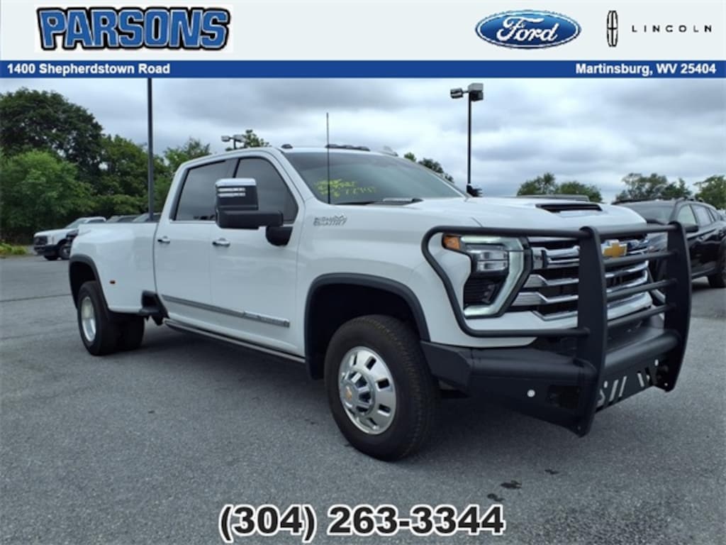 Summit White 2025 Chevrolet Silverado 3500HD High Country 4WD Duramax 6.6L V8 Turbodiesel Clean CARFAX. LOCAL ONE OWNER, 10-Speed Automatic, 4WD, Jet Black Leather, 10-Way Power Driver Seat Adjuster w/Lumbar, 10-Way Power Passenger Seat Adjuster w/Lumbar, 120-Volt Bed Mounted Power Outlet, 120-Volt Interior Power Outlet, Auto High-beam Headlights, Auto-Dimming Inside Rearview Mirror w/Camera, Automatic temperature control, Bed View Camera w/2 Trailer Camera Provisions, Black Power-Retractable Assist Steps, Bluetooth® For Phone, Bose Premium 7-Speaker Sound System, Chevytec Spray-On Black Bedliner, Dual 220-Amps Primary/170-Amps Aux Alternators, Dual rear wheels, Durabed Pickup Bed, Electric Rear-Window Defogger, Engine Block Heater, Exhaust Brake, EZ Lift Power Lock & Release Tailgate, Front fog lights, Front LED Fog Lamps, Fully automatic headlights, Garage door transmitter, Gooseneck/5th Wheel Prep Package, Heated 2nd Row Outboard Seats, Heated door mirrors, Heated Driver & Front Outboard Passenger Seats, Heated front seats, Heated rear seats, Heated Steering Wheel, High Country Premium Package, Hitch Guidance w/Hitch View, In-Vehicle Trailering App System, Keyless Open & Start, Manual Tilt-Wheel/Telescoping Steering Column, Memory seat, Multi-Flex Tailgate, Multicolor 15" Diagonal Head-Up Display, Power driver seat, Power Sunroof, Power Tailgate, Power-Retractable Assist Steps, Premium audio system: Chevrolet Infotainment 3 Premium, Push Button Start, Rear window defroster, Remote keyless entry, Remote Vehicle Starter System, SiriusXM w/360L Trial Subscription, Steering Wheel Audio Controls, Steering wheel mounted audio controls, Technology Package, Telescoping steering wheel, Tilt steering wheel, Trailer Camera Provisions, Trailer Side Blind Zone Alert, Ultrasonic Front & Rear Park Assist, Unauthorized Entry Theft-Deterrent System, Universal Home Remote, Up-Level Rear Seat w/Storage Package, Ventilated Driver & Front Passenger Seats.