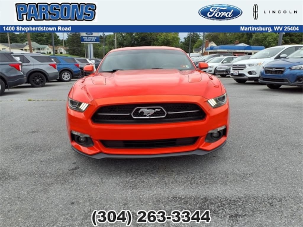 Competition Orange 2015 Ford Mustang GT Premium 50th Anniversary RWD 5.0L V8 Ti-VCT ABS brakes, Alloy wheels, Compass, Electronic Stability Control, Front dual zone A/C, Heated door mirrors, Heated front seats, Illuminated entry, Low tire pressure warning, Remote keyless entry, Traction control.