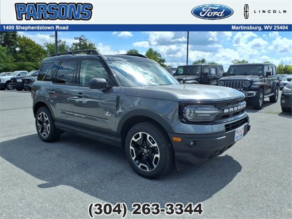 Please call the Dealership to verify this vehicle is still in stock. We pride ourselves in supporting the Eastern Panhandle of West Virginia and value our community above and beyond all others. Thank you for considering us. Your gonna like the way we serve. We are a full-service Ford Dealership. We have an Excellent Finance Department and secure financing for the majority of our customers. We are always looking for nice trades. If you are not local, no worries, we have been selling vehicles throughout the U.S. For many years. We will gladly handle everything for you to ensure that this is an exceptional car buying experience. Visit our website today. CARFAX One-Owner. Carbonized Gray Metallic 2022 Ford Bronco Sport Outer Banks 4WD 1.5L EcoBoost Equipment Group 300A, HD Radio, Tech Package, Universal Garage Door Opener (UGDO), Wireless Charging Pad. Your Small Town Dealer with Big City Pricing!!! 8-Speed Automatic 25/28 City/Highway MPG