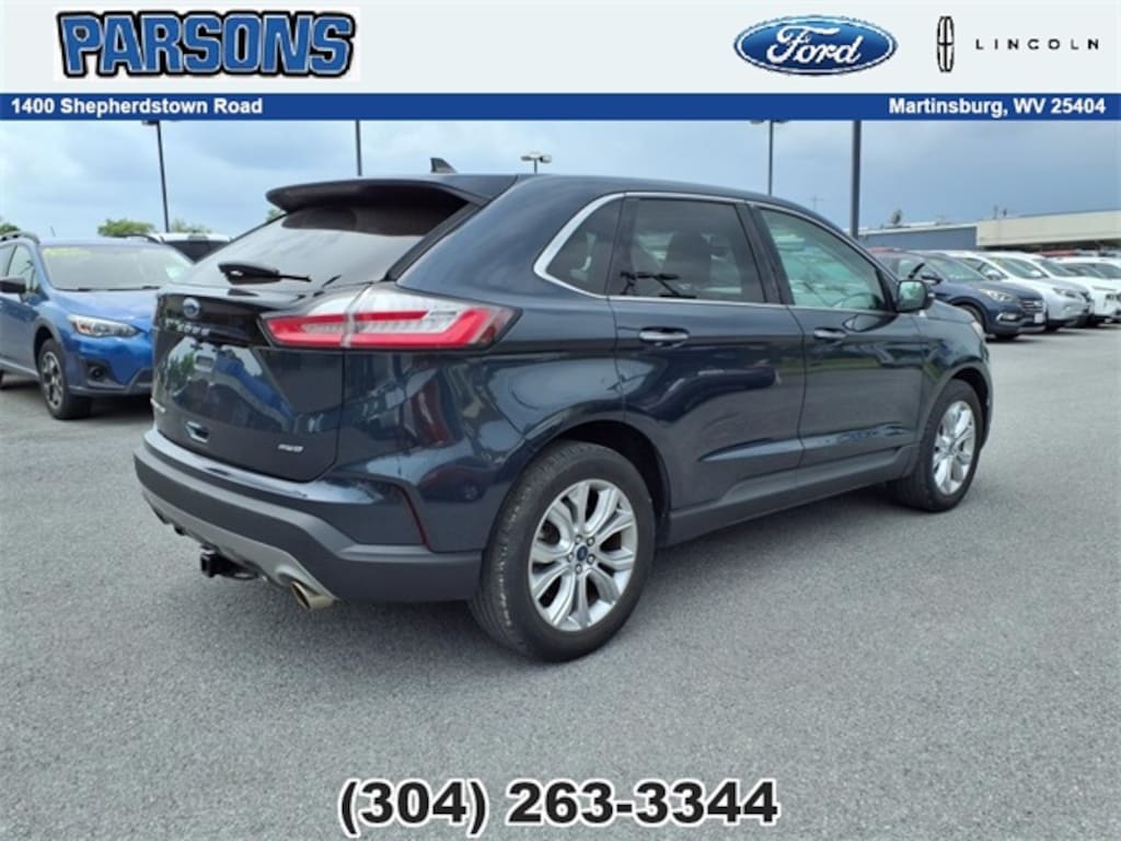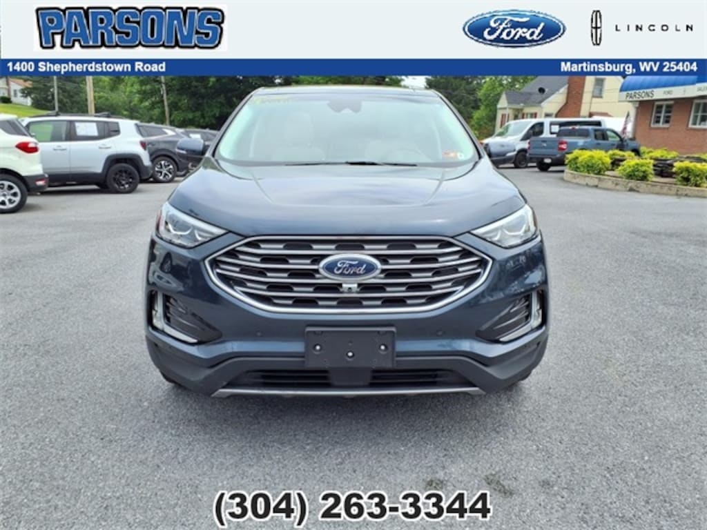 Stone Blue Metallic 2022 Ford Edge Titanium AWD EcoBoost 2.0L I4 GTDi DOHC Turbocharged VCT AWD, Adaptive Cruise Control w/Stop & Go, Adaptive LED Headlamps, Auto-Dimming Driver's Sideview Mirror, Connected Built-In Navigation, Equipment Group 301A, Evasive Steering Assist, Front 180-Degree Camera w/Split View, Heated Rear Seats, Lane Centering, Leather-Trimmed Heated/Cooled Sport Bucket Seats, Panoramic Vista Roof, Power Tilt/Telescoping Steering Column w/Memory, Wheels: 19" Luster Nickel-Painted Aluminum.
