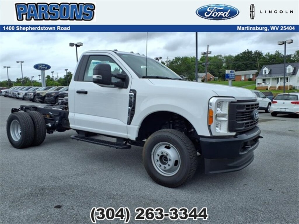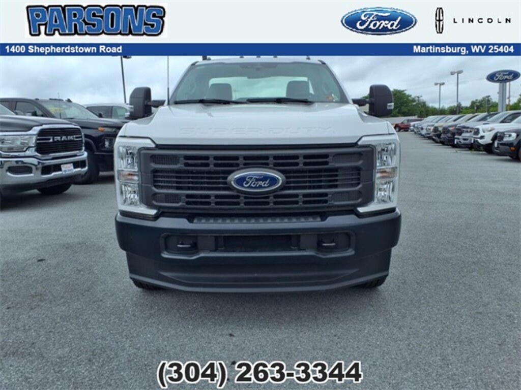 Oxford White 2023 Ford F-350SD XL DRW 4WD 7.3L V8 PFI OHV 16V Federal 335hp 4WD, 410 Amp Dual Alternators, Limited Slip w/4.30 Axle Ratio, Order Code 640A, Platform Running Boards, Snow Plow Prep Package.