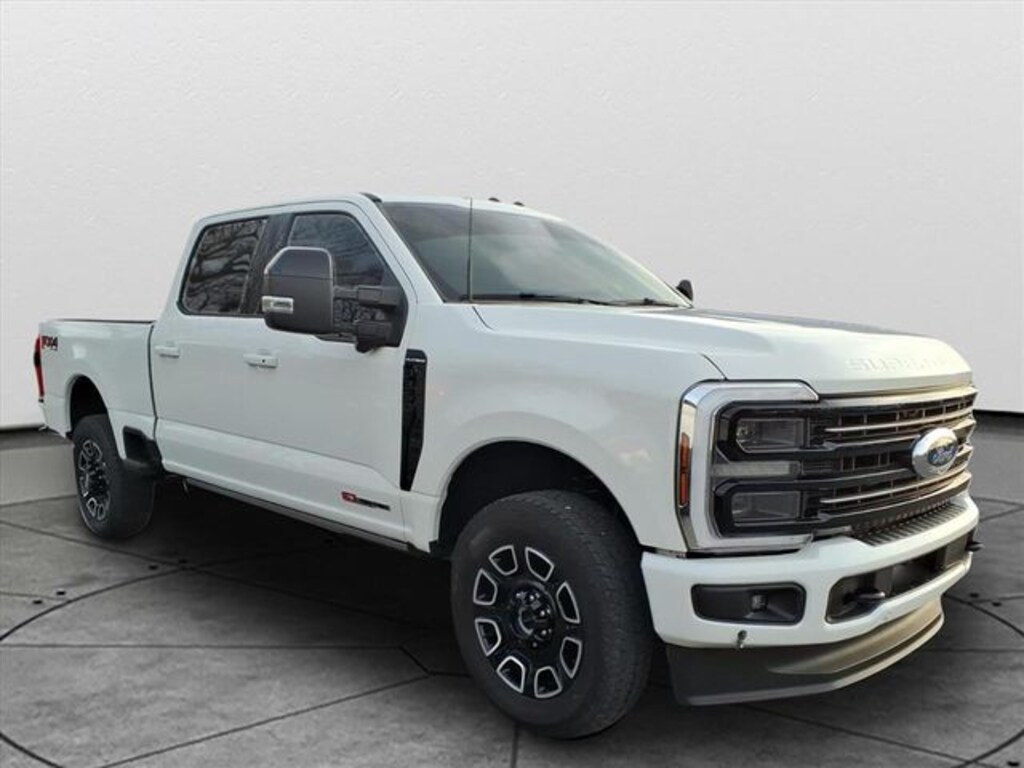 Star White Metallic Tri-Coat 2025 Ford F-350SD Platinum SRW 4WD 6.7L High Output Power Stroke V8 Diesel Non-Smoker, LOCAL ONE OWNER, 4WD, 410 Amp Dual Alternators, 5th Wheel/Gooseneck Hitch Prep Package, ABS brakes, Adjustable pedals, Alloy wheels, Auto High-beam Headlights, Automatic temperature control, Compass, Electronic Stability Control, Electronic-Locking with 3.31 Axle Ratio, Flow-Through Console, Front dual zone A/C, Front fog lights, Fully automatic headlights, FX4 Off-Road Package, Garage door transmitter, GVWR: 12,000 Lb Payload Package, Heads-Up Display, Heated door mirrors, Heated front seats, Heated rear seats, Heated steering wheel, Hill Descent Control, Illuminated entry, Internet access capable: FordPass Connect 5G, Low tire pressure warning, Max Recline Seats, Memory seat, Navigation System, Off-Road Specifically Tuned Shock Absorbers, Order Code 713A, Pedal memory, Power driver seat, Power passenger seat, Power windows, Power-Deployable Running Boards, Pro Power Onboard - 2kW, Radio: B&O Unleashed Sound System by Bang & Olufsen, Rapid-Heat Supplemental Cab Heater, Remote keyless entry, SiriusXM Radio with 360L, SYNC 4 with Enhanced Voice Recognition, Telescoping steering wheel, Tilt steering wheel, Traction control, Twin Panel Power Moonroof, Unique FX4 Off-Road Box Decal, Unique Platinum Leather 40/Console/40 Seats, Variably intermittent wipers, Vehicle Safe by Console Vault, Ventilated front seats, Wheels: 20" Bright Machined and Painted Aluminum.
