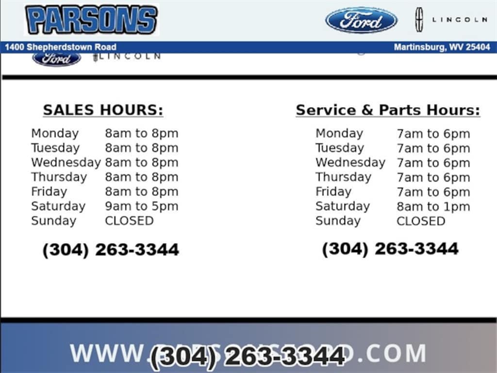 Please call the Dealership to verify this vehicle is still in stock. We pride ourselves in supporting the Eastern Panhandle of West Virginia and value our community above and beyond all others. Thank you for considering us. Your gonna like the way we serve. We are a full-service Ford Dealership. We have an Excellent Finance Department and secure financing for the majority of our customers. We are always looking for nice trades. If you are not local, no worries, we have been selling vehicles throughout the U.S. For many years. We will gladly handle everything for you to ensure that this is an exceptional car buying experience. Visit our website today.