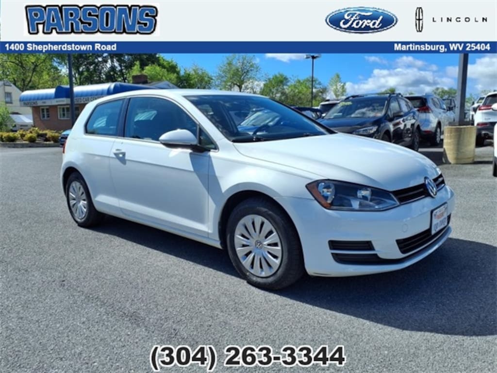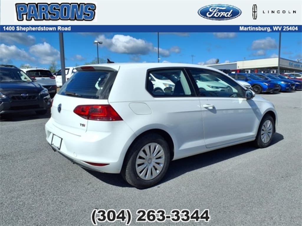 Pure White 2015 Volkswagen Golf Launch Edition 2-Door FWD 1.8L I4 Turbocharged DOHC 16V ULEV II 170hp Black Cloth, 15" Steel Wheels, 8 Speakers, Air Conditioning, AM/FM radio: SiriusXM, Comfort Seats, Front Bucket Seats, Heated door mirrors, Panic alarm, Power door mirrors, Power steering, Power windows, Radio: 5.8" Touchscreen AM/FM Audio w/CD, Rear window defroster, Rear window wiper, Remote CD player, Remote keyless entry, Telescoping steering wheel, Tilt steering wheel, Variably intermittent wipers.
